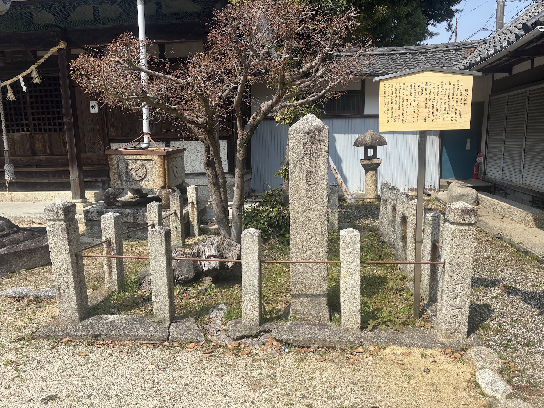 社殿の脇には、昔日永の追分に立っていた、東海道最古の道標が保存されています。