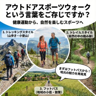 アウトドアスポーツウォークという言葉をご存じですか?アウトドアスポーツウォークとは、ウォーキングを健康運動としてだけ捉えるのではなく、数多くあるス…