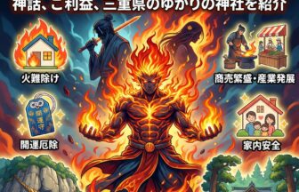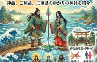 花の窟屋(はなのいわや)は日本最古の神社と言われ、世界遺産の一つに登録されている神社で、火の神様・カグツチとともに祀られており、イザナミのお墓とも言われています。
