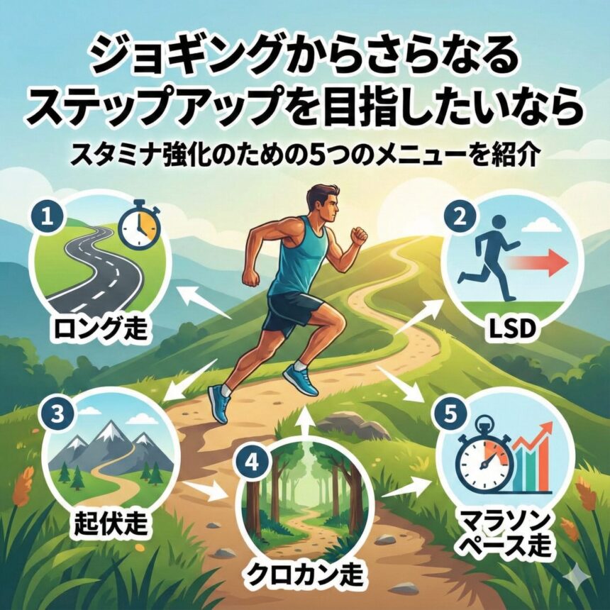 そこで今回は、ジョギングからさらなるステップアップを目指したい方で、特にスタミナを強化したいとお考えの方にお勧めの5つのメニューを紹介していきます。