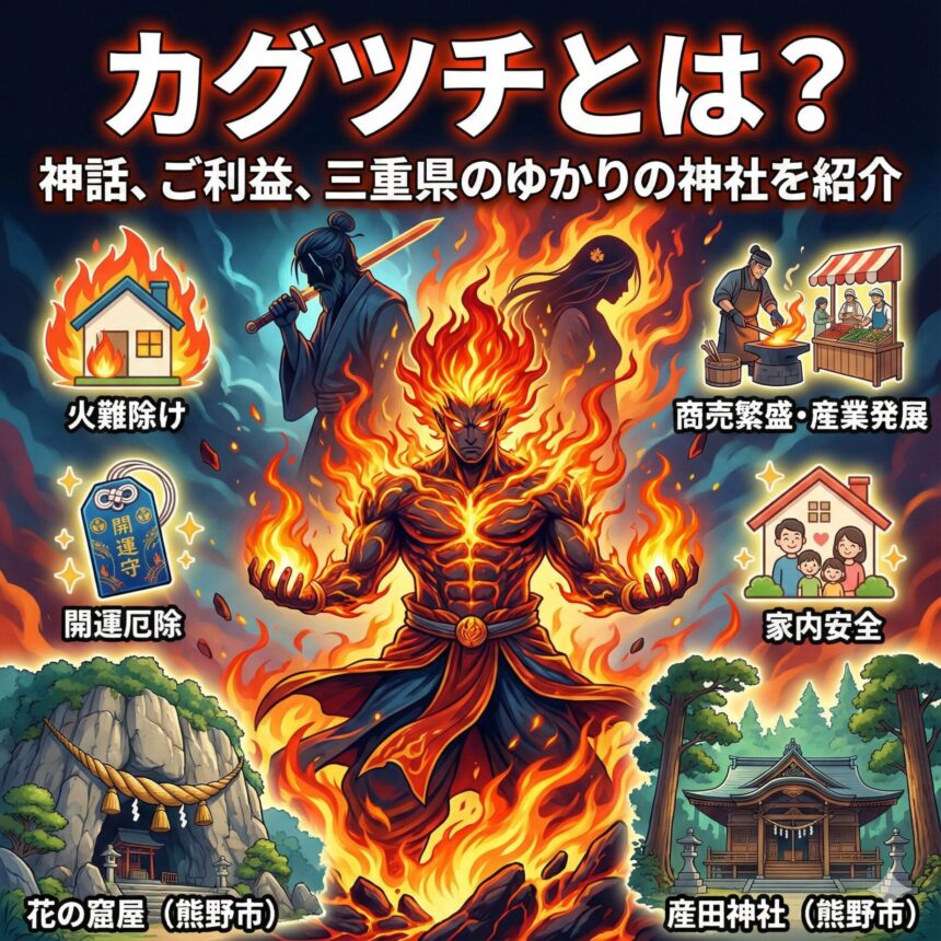 カグツチは火災を引き起こす危険な存在であると同時に、火は日常生活を支え、様々な産業を発展させる役割も果たしたことから、商売繁盛などのご利益もあります。