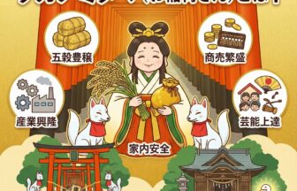 火の神様として火難除のご利益がある他、商売繁盛、開運厄除、家内安全、産業発展など多くのご利益があるとされています。